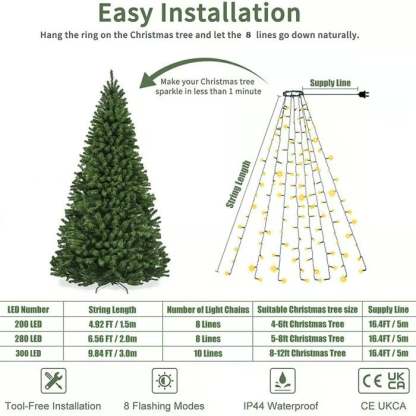 No tools needed—just place the halo ring at the top of your tree, let the light strands cascade down, and you’re done! Decorating has never been this simple.