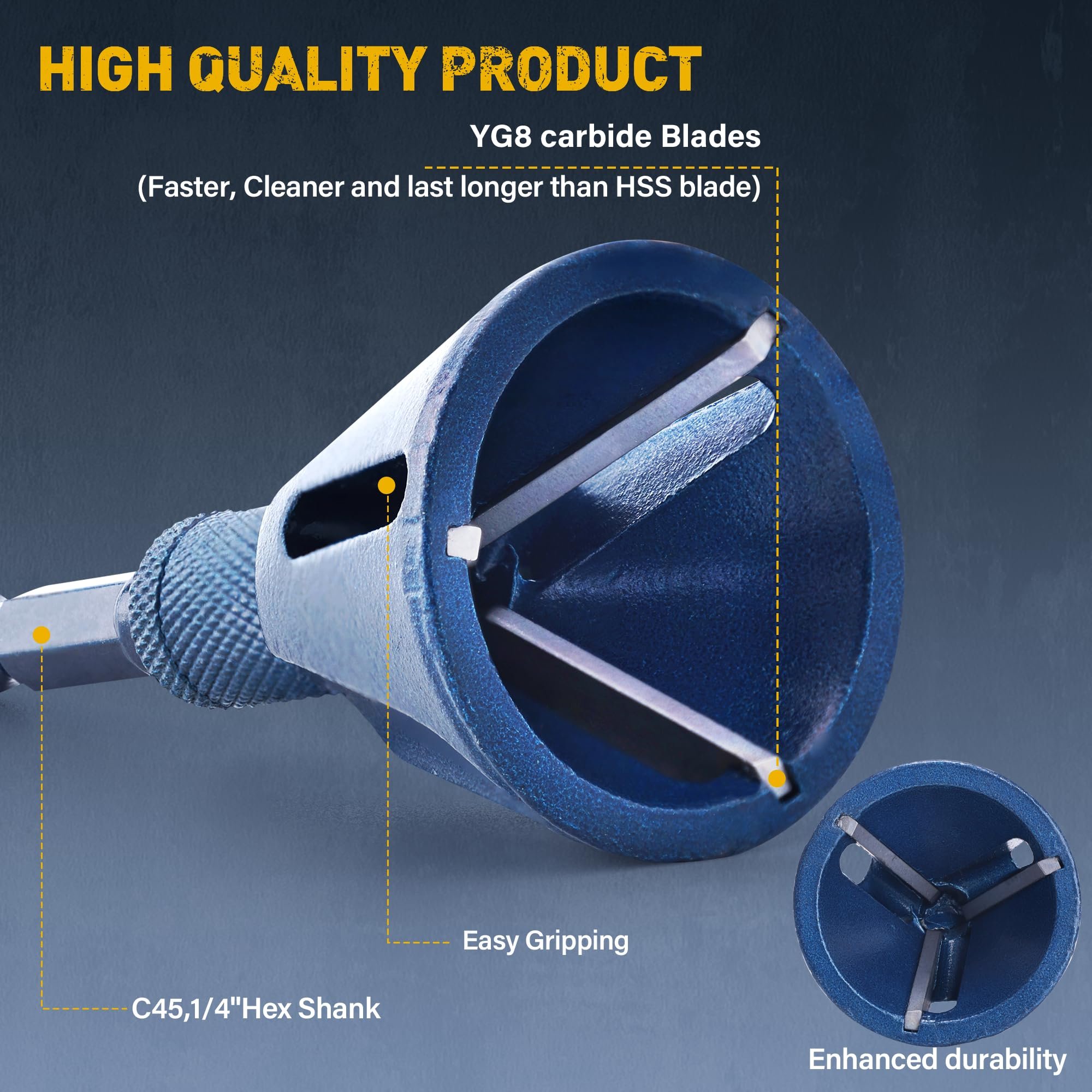 Equipped with YG8 carbide blades, this tool is highly durable, wear-resistant, and corrosion-resistant. The three-blade design delivers powerful cutting performance, ensuring clean, precise, professional results every time.