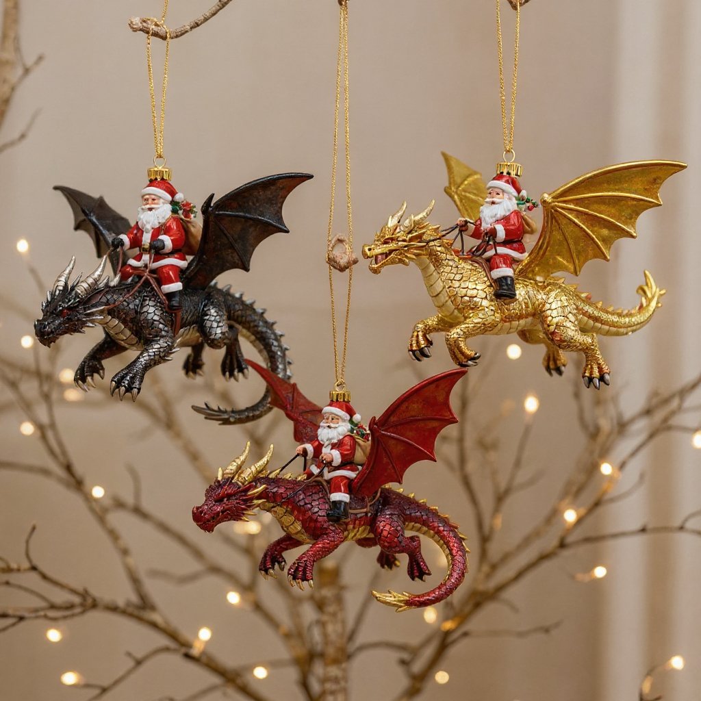Santa riding a DRAGON instantly becomes the star of your Christmas tree.