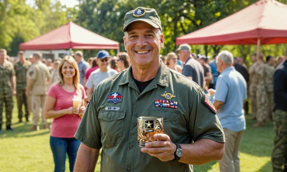 "As a veteran myself, I wanted something that truly represented my years of service. This glass exceeded my expectations. The Army emblem is beautifully crafted, and the glass feels solid and high-quality. Every time I raise it for a toast, it reminds me of the bond I share with my fellow soldiers. Absolutely worth it!"